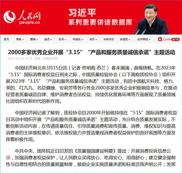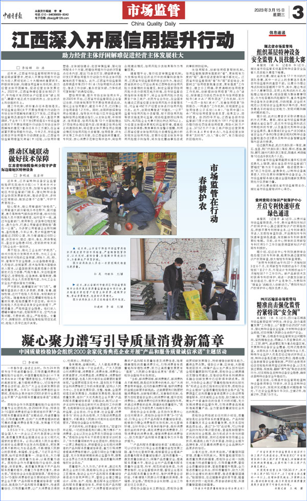 中國質(zhì)量報(bào):凝心聚力譜寫引導(dǎo)質(zhì)量消費(fèi)新篇章——中國質(zhì)檢協(xié)會組織兩千多家企業(yè)開展“產(chǎn)品和服務(wù)質(zhì)量誠信承諾”主題活動