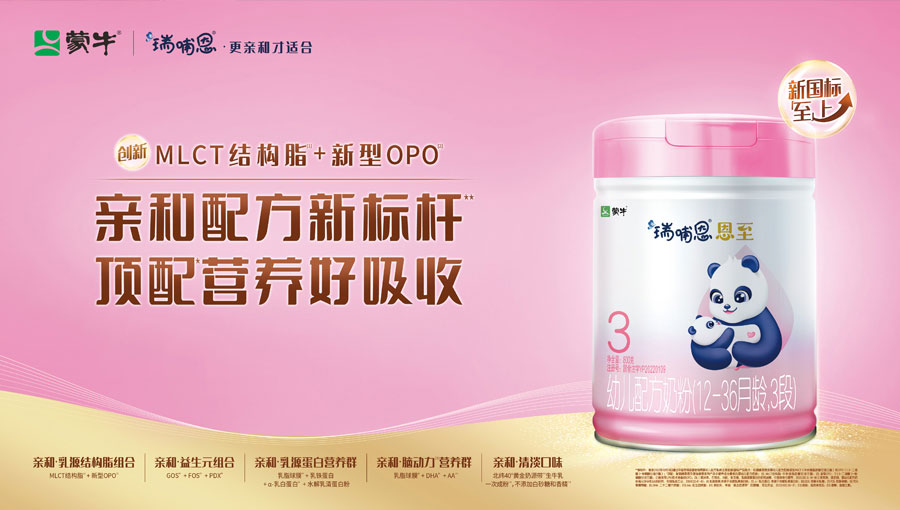 主要產(chǎn)品:瑞哺恩菁珀、恩至等嬰幼兒配方奶粉;蒙牛悠瑞成人奶粉;蒙牛M8、一米八八兒童奶粉