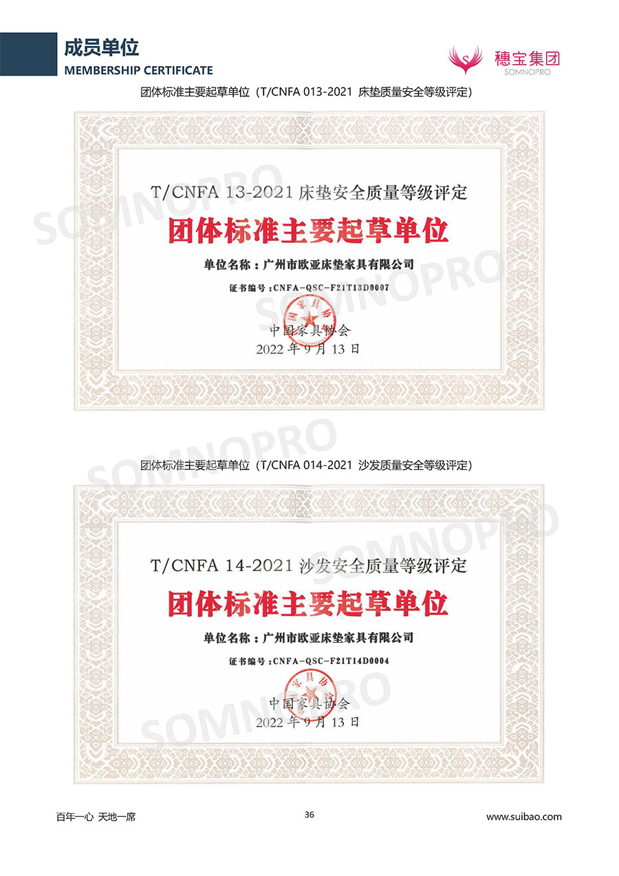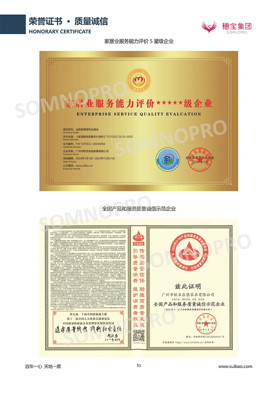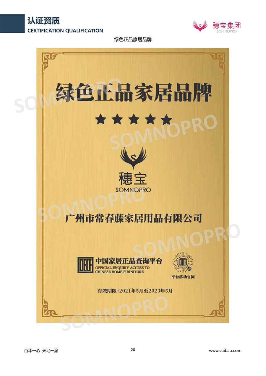 本著高品質(zhì)、高效率、重管理的原則,穗寶已通過ISO9001質(zhì)量管理體系認(rèn)證證書、ISO14001環(huán)境管理體系認(rèn)證證書、ISO45001職業(yè)健康安全管理體系認(rèn)證證書、中國環(huán)境標(biāo)志產(chǎn)品認(rèn)證證書、家居綠色環(huán)保領(lǐng)跑品牌、綠色正品家居品牌、企業(yè)標(biāo)準(zhǔn)“綠色領(lǐng)跑者”證書、CMS測量管理體系證書、CMS測量管理體系證書附件、廣東省“守信用重合同”企業(yè)、廣州歐亞-納稅信用A級納稅人(連續(xù)5年:2018-2022)、2024年中國500最具價值品牌,品牌價值高達(dá)302.89億元、廣東高價值商標(biāo)品牌(穗寶)、廣東省重點商標(biāo)保護(hù)名錄納入證明、廣州市勞動關(guān)系和諧企業(yè)AA級。穗寶自創(chuàng)立以來,不斷致力于新產(chǎn)品的設(shè)計與研發(fā),多次在國內(nèi)家具展會屢獲獎項,產(chǎn)品暢銷國內(nèi)外,深受客戶一致好評。