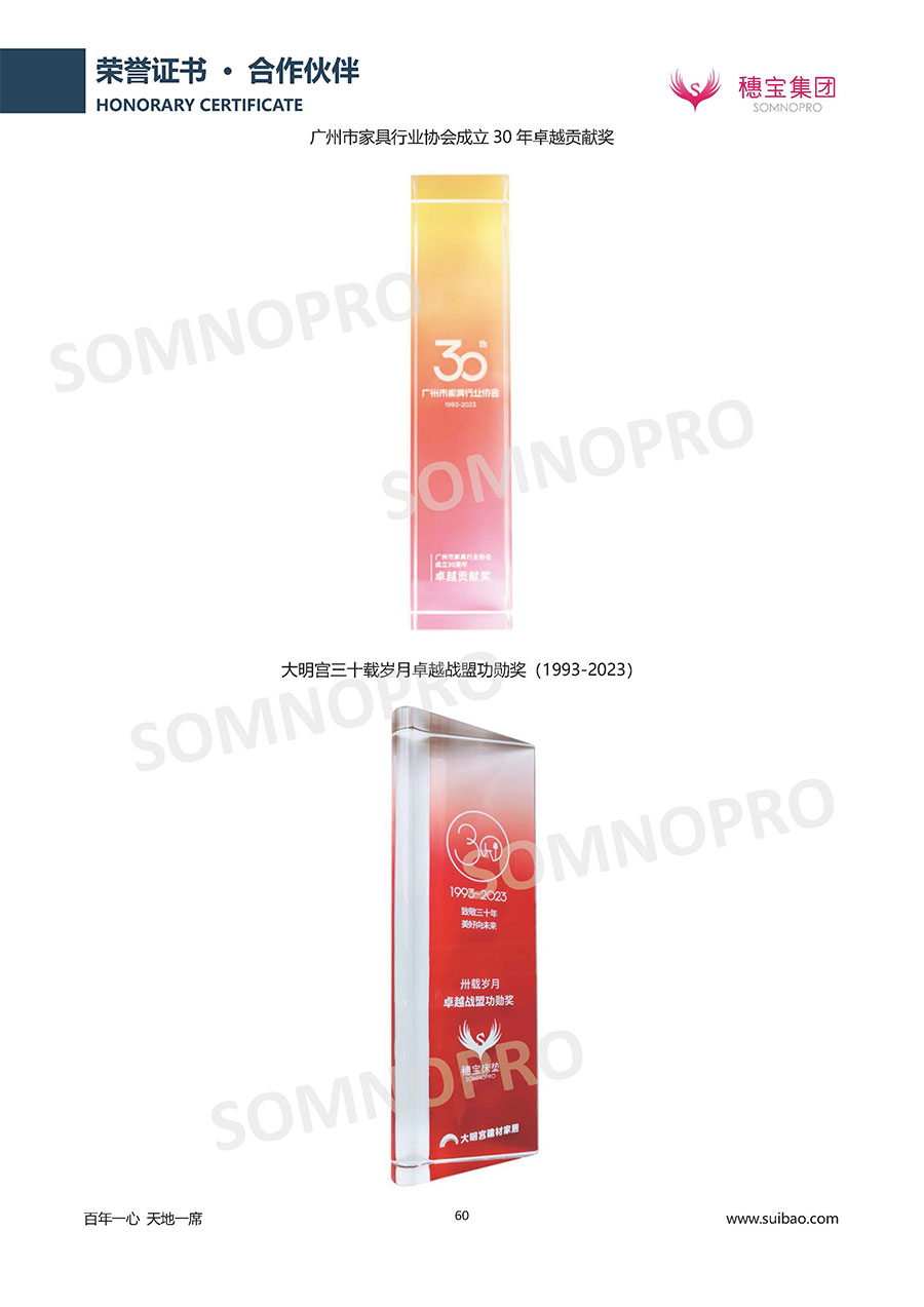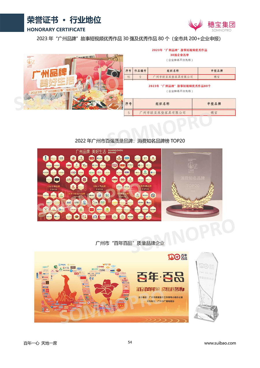 自1971年獨立研發(fā)生產(chǎn)出專屬國人的彈簧床墊,穗寶關(guān)于優(yōu)質(zhì)深度睡眠的研究已有半個世紀(jì)的歷史。穗寶一直專注床墊,專注中國消費(fèi)者的睡眠研究,針對中國人特點進(jìn)行優(yōu)化創(chuàng)新,不斷提升國人的睡眠體驗,只為成就每個晚上8小時的優(yōu)質(zhì)深度睡眠。憑借不斷革新的研發(fā)科技和深受消費(fèi)者信賴的產(chǎn)品品質(zhì),穗寶集團(tuán)旗下品牌和產(chǎn)品屢獲國內(nèi)外大獎,連續(xù)20年榮膺中國500最具價值品牌,品牌價值高達(dá)302.89億元。