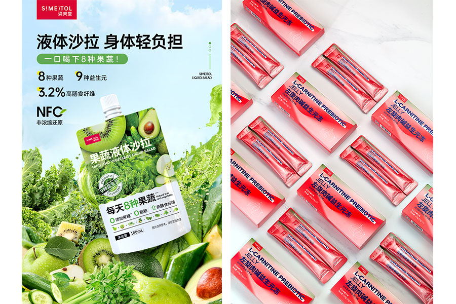 主要產(chǎn)品:姿美堂膠原蛋白肽、酵素制品、谷物蛋白棒、益生菌、左旋肉堿益生元果凍