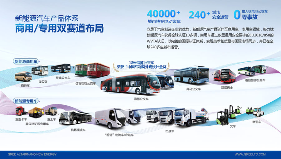 以完善的研發(fā)體系,格力鈦加快技術(shù)創(chuàng)新與產(chǎn)業(yè)升級(jí)的步伐。格力鈦研發(fā)的格力鈦電池安全性長(zhǎng)期領(lǐng)跑行業(yè),憑借具有高安全、大倍率、快充放、耐寬溫、長(zhǎng)壽命等特性,被選為“國(guó)家制造業(yè)單項(xiàng)冠軍產(chǎn)品”,廣泛應(yīng)用于新能源汽車以及工商業(yè)園區(qū)、通訊基站、電網(wǎng)調(diào)頻、軌道交通、風(fēng)光消納、船舶岸電、家庭住宅、軍事科研等儲(chǔ)能領(lǐng)域,具有廣闊的市場(chǎng)前景和應(yīng)用價(jià)值。目前,格力鈦儲(chǔ)能產(chǎn)品已在丹麥、瑞士、芬蘭等全球30多個(gè)國(guó)家和地區(qū)使用,新能源汽車產(chǎn)品在北京、杭州、武漢、成都、青島、哈爾濱、包頭、海口等全球240多座城市運(yùn)營(yíng),12年全球零電池事故安全運(yùn)行。