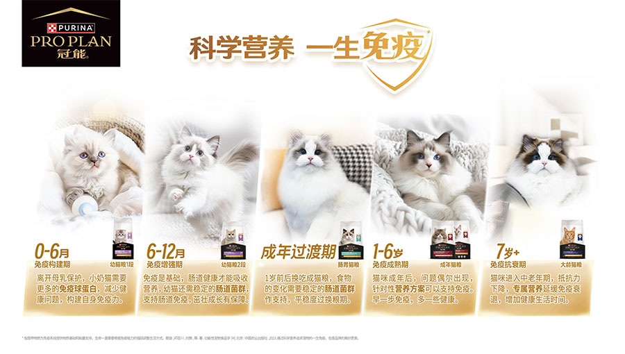 *指營養(yǎng)物質(zhì)為免疫系統(tǒng)提供物質(zhì)基礎(chǔ)和能量支持,生命需要根據(jù)免疫能力的強(qiáng)弱調(diào)整生活方式。蔡旋、鄧百川、劉策等著.功能性寵物食品學(xué)[M].北京:中國農(nóng)業(yè)出版社,2023.通過科學(xué)營養(yǎng)追求寵物的一生免疫,也是品牌的美好愿景。