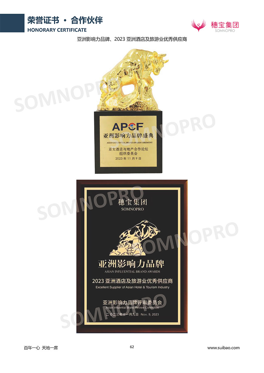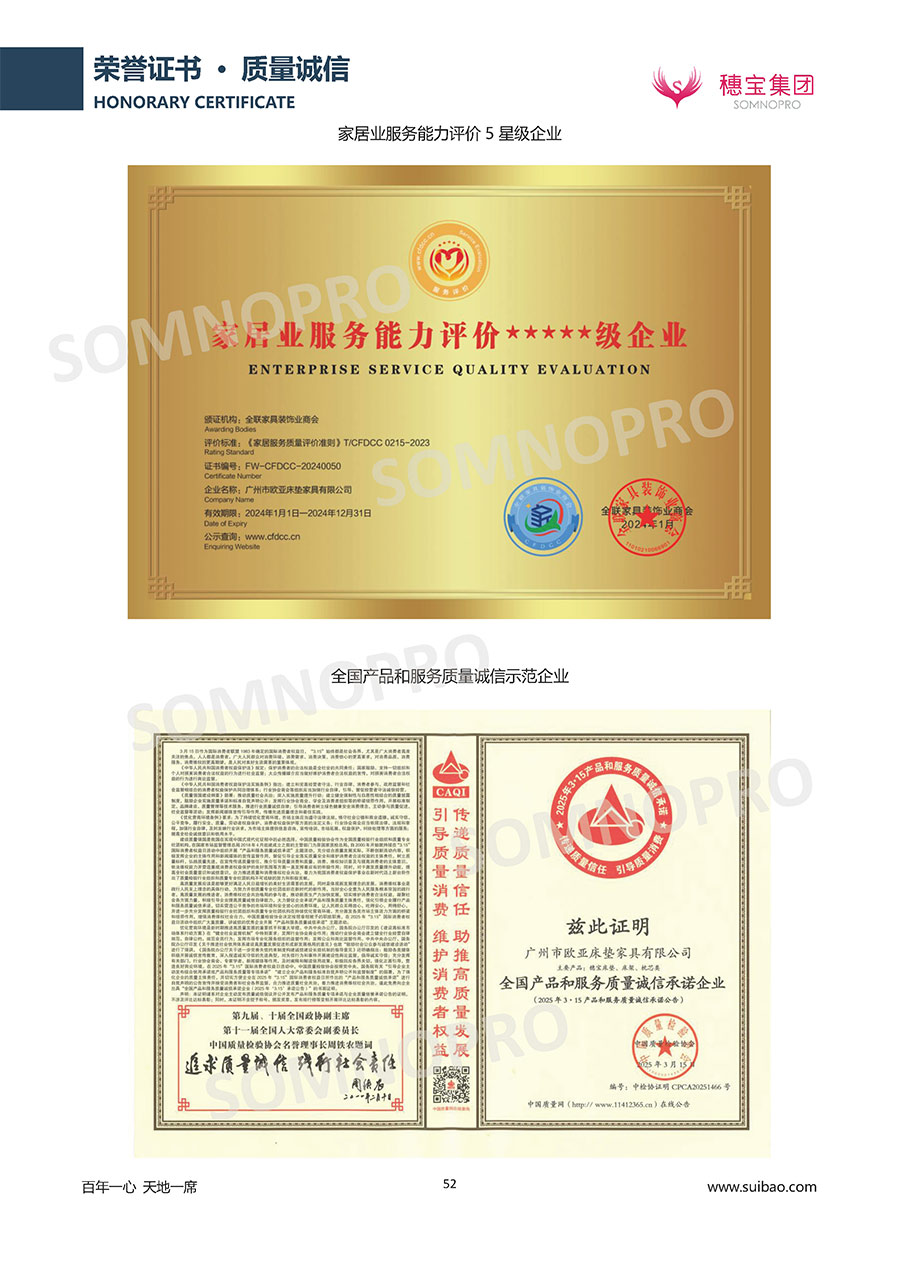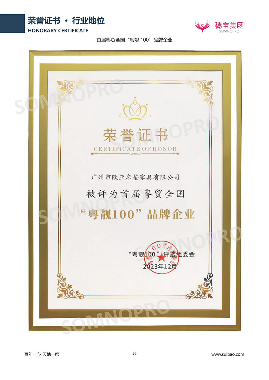 自1971年獨立研發(fā)生產(chǎn)出專屬國人的彈簧床墊,穗寶關(guān)于優(yōu)質(zhì)深度睡眠的研究已有半個世紀的歷史。穗寶一直專注床墊,專注中國消費者的睡眠研究,針對中國人特點進行優(yōu)化創(chuàng)新,不斷提升國人的睡眠體驗,只為成就每個晚上8小時的優(yōu)質(zhì)深度睡眠。憑借不斷革新的研發(fā)科技和深受消費者信賴的產(chǎn)品品質(zhì),穗寶集團旗下品牌和產(chǎn)品屢獲國內(nèi)外大獎,連續(xù)20年榮膺中國500最具價值品牌,品牌價值高達302.89億元。