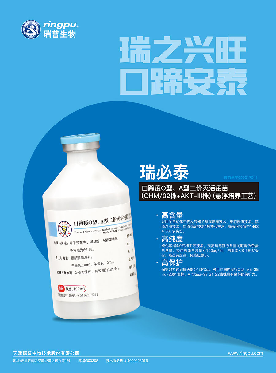 主要產品:瑞普生物疫苗、藥物原料、藥物制劑、飼料添加劑
