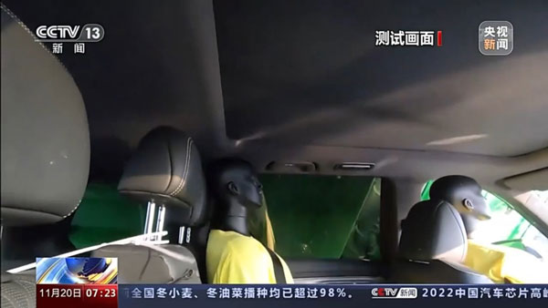 全新第二代GS8在27噸重載貨車側壓下車身結構保持完好