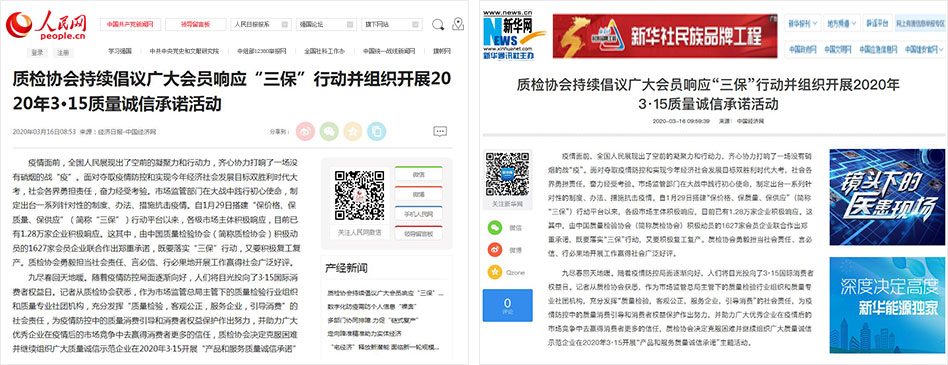 人民網(wǎng)《質檢協(xié)會持續(xù)倡議廣大會員響應“三?!毙袆硬⒔M織開展2020年3·15質量誠信承諾活動》