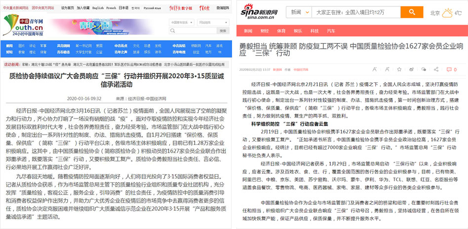 搜狐網(wǎng)《中國質量檢驗協(xié)會攜手廣大會員企業(yè)響應“三保”行動》